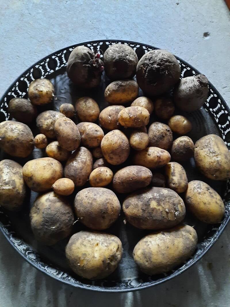 Het is bijna juli. Mijn pupil heeft de helft van de aardappel planten geoogst. Een feestje het is een mooie oogst. Ook hebben we al bieten, courgettes en sla. We hebben een mooie rij aardbeien gezet. Bij de framboos, die we bleken te hebben. De gekregen goudsbloemen bloeien heerlijk oranje in de tuin. De prei heb ik uit elkaar gezet. En ik heb nog gele en gewone sperziebonen geplant. Ook zijn er nog een paar tomaten plantjes neergezet. Wel met een emmer erover heen, want het leger slakken kruipt al weer de tuin in. De tomaten thuis in de pot en groeibak doen het erg goed. De eerste tomaten groeien er aan.